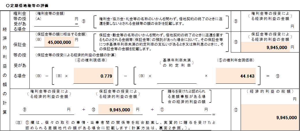 ※定期借地権の残りの年数に応じて定められた一定の割合の記入方法